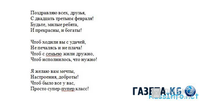 Вместо вывода нужно еще раз сказать о том, что как-бы не прошло 23 февраля, поздравления от женщиннавсегда останутся в памяти у мужчин. Они, безусловно, хотят оставаться для окружающих брутальными и скупыми на эмоции людьми, но в душе каждый из них будет рад любым теплым и искренним пожеланиям в свой адрес.