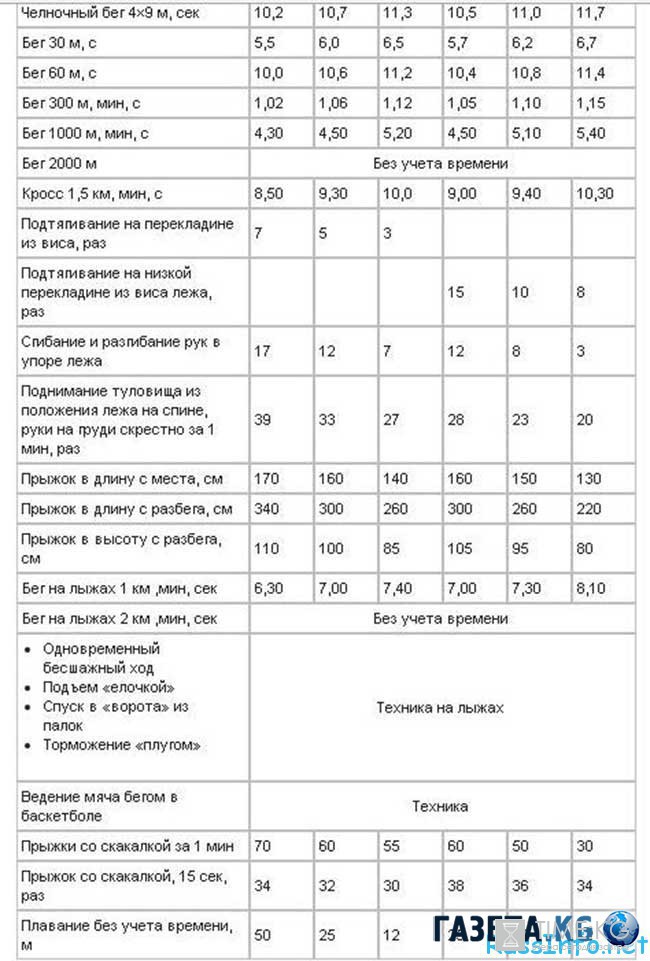 Ко 2 ступени относят мальчиков и девочек, в возрасте 9-10 лет, обучающихся в 3-4 классах. Тут зачетным станет выполнение 5-7 тестов. Вот таблица норм ГТО для школьников в 2016 году в России во всех регионах.