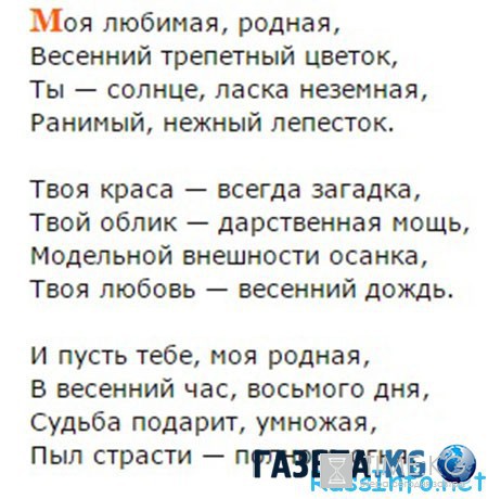 Любимой женщине в этот день мужчина может посвящать самые романтичные стихотворения, это будет выглядеть уместно и выгодно выделит его среди других мужчин. Не нужно скрывать тот факт, что девушки будут рассказывать друг другу, как из поздравили возлюбленные. Нужно дать своей ненаглядной шанс похвастаться и вызвать чувство зависти у подруг. Хорошее поздравления 8 марта любимой 2016 можно подобрать из готовых вариантов, главное, чтобы слова были искренними и не важно, кто их написал.