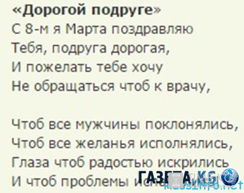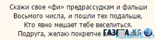 Хорошее поздравления на 8 марта девушке 2016 в стихах или прозе можно найти в интернете, а если хочется выделиться — достаточно придумать несколько строчек самостоятельно или взять готовое послание за основу и персонализировать его.