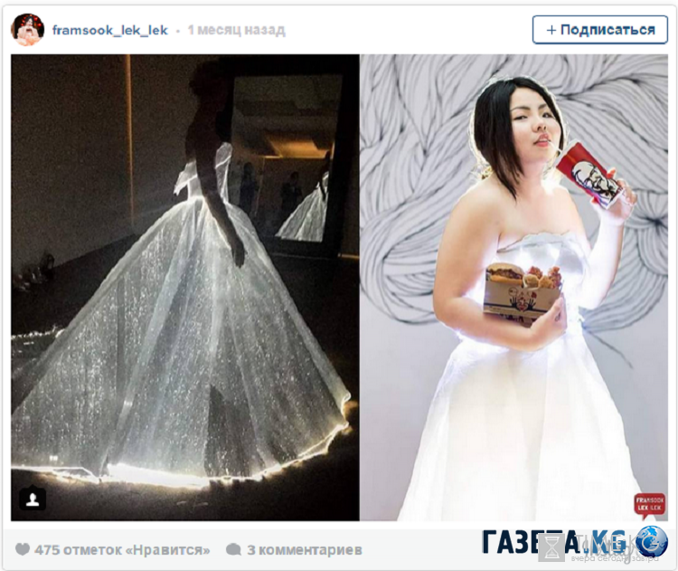 Самым ярким образом девушки стало вечернее платье из розовых пакетов, наполненных крабовыми чипсами. Издалека оно даже кажется нежным и «воздушным».