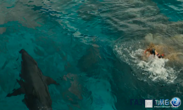 Именно в этот момент все ее надежды начинают рушиться: ей навстречу выплывает гигантская акула, которая начинает пристально ее охранять, давая понять, что добычу она не отпустит. Какие-то 200 метров разделяют главную героиню до берега и спасения. Но положение безысходное. Риф очень узкий и острый. Наступит ночь и вода покроет островок спасения водой.