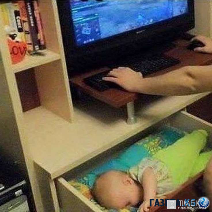 Рождается ребенок. Геймер точно должен бросить играть и заняться воспитанием сына или дочки. Жена пытается переключить внимание мужа геймера на малыша, даже оставляет сына или дочку с мужем, чтобы он почувствовал ответственность, но не тут то было. Геймер всегда найдет возможность, чтобы поиграть, даже если на его руках новорожденный ребенок. Геймеры! Остановитесь! Посмотрите, как прекрасен мир, который вас окружает!