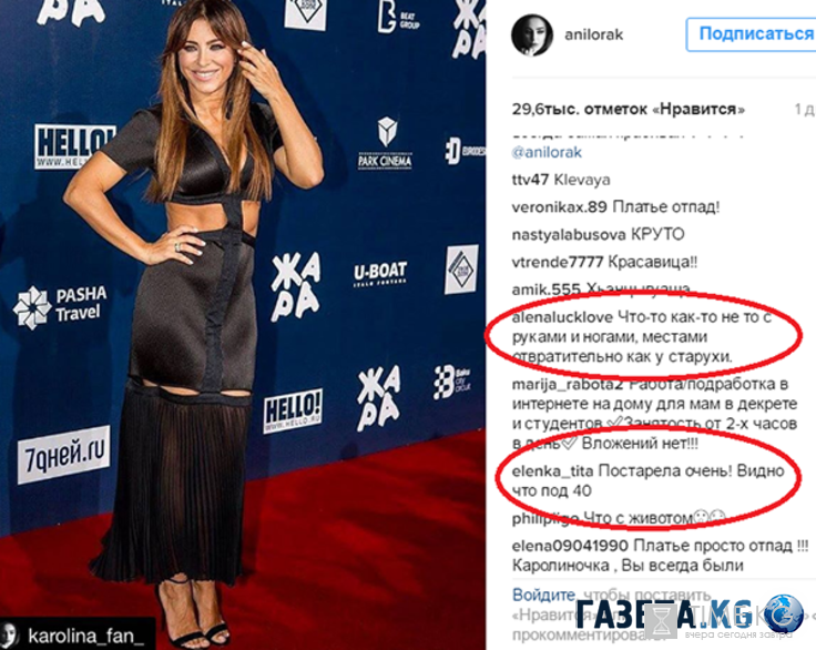 Но что-то пошло не так — в Баку, на красной дорожке фестиваля «Жара-2016» любимица публики появилась в «жутком наряде», подчеркивающем все недостатки фигуры. По максимуму закрытая грудь — платье откровенно неудачной длины, отсутствие прически и «высушенное тело перекаченного качка». Глаза поклонников открылись — одни ноги Ани Лорак чего стоят! Не зря певица тщательно их скрывает. Вид «как у старухи», это ужасно, «коротышка» — это самые «сдержанные» комментарии.