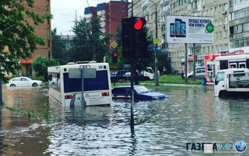 По словам очевидцев, Красноярск настолько затопило после дождя, что на перекрестке улиц Железнодорожников и Красной Армии застряли три машины и автобус. Пассажиры автобуса не могли выйти, пришлось ожидать спасателей, которые отбуксировали его в другое место. Воду с дороги откачали.