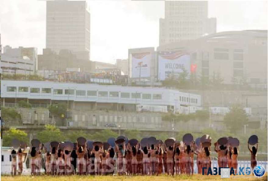 Соцсети взбудоражены поступком голых американок. Более ста девушек разделись и устроили неповторимое шоу с зеркалами в руках на территории частного владения.