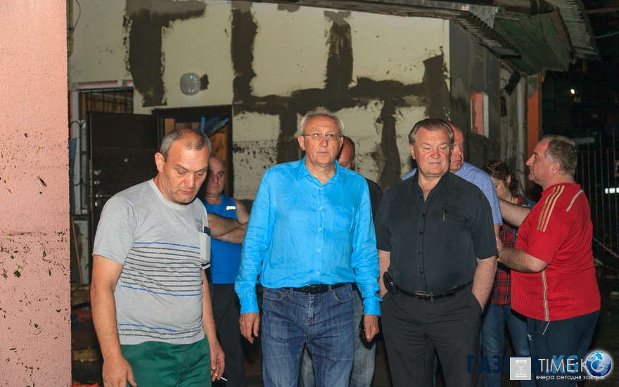 Уже глубокой ночью Сергей Кузнецов и Владимир Арцыбашев пообщались с жителями дома 39 в Братском переулке: ранее гражданам этого дома, пострадавшего от затопления во время предыдущего ливня, были предложены квартиры в маневренном фонде, большинство жителей дома были перевезены (в частности, женщины и дети). На месте оставались, в основном, мужчины, которых заместители главы администрации еще раз попытались убедить переместится в предоставленные администрацией безопасные сухие места.
