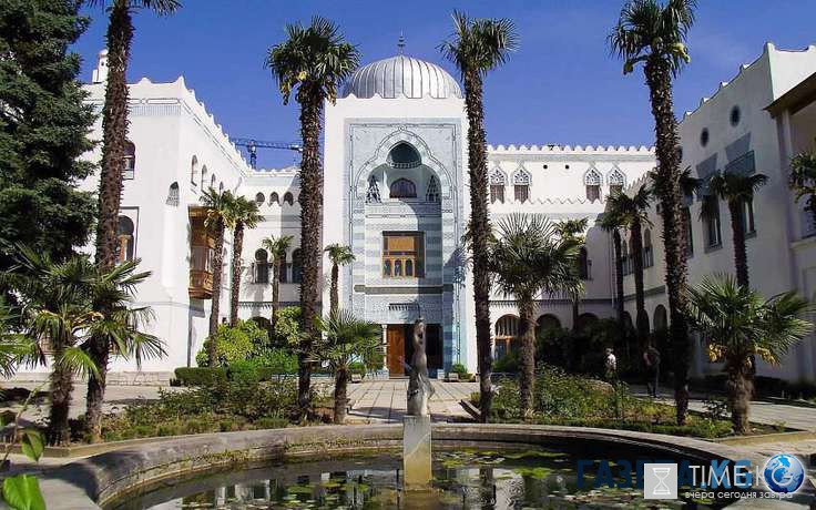 Дворец построен по эскизам великого князя Петра Николаевича Романова. Расположено это чудо архитектуры в одной из самых теплых «точек» полуострова Крым. Название дворца с арабского переводится как «прекрасный». На входе вас встречает надпись на арабском языке, которая гласит «Да благословит Аллах вошедшего сюда». Серебряные купола, арочные окна, цветная мозаика, роспись орнаментам — все это дает ощущение восточной сказки.