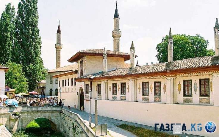 Единственный в мире сохранившийся памятник крымско-татарской архитектуры. Бывшее место отдыха крымских ханов. Множество двориков, окна с кружевными решетками, тончайшая роспись на стенах - атмосфера этого места, по мнению ученых-историков, идеально передает представление ханов о райской жизни. Зал Дивана, корпус для гарема, две мечети, дозорная башня, дом муфтия, кладбище, кухонный двор, бани и 14 фонтанов построены без единого гвоздя.