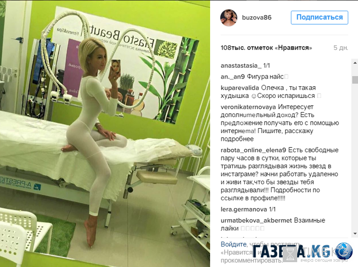 Стройняшка-блондинка с завидной регулярностью радует своих поклонников «свежачком». У Оли миллионы подписчиков в Instagram, следящих за каждым шагом красавицы. Недавняя публикация из одного центра красоты столицы переполошила фолловеров: из подписи к снимку они решили, что Ольга решила сбросить лишние кило, которых, по всеобщему мнению, у нее нет в принципе.
