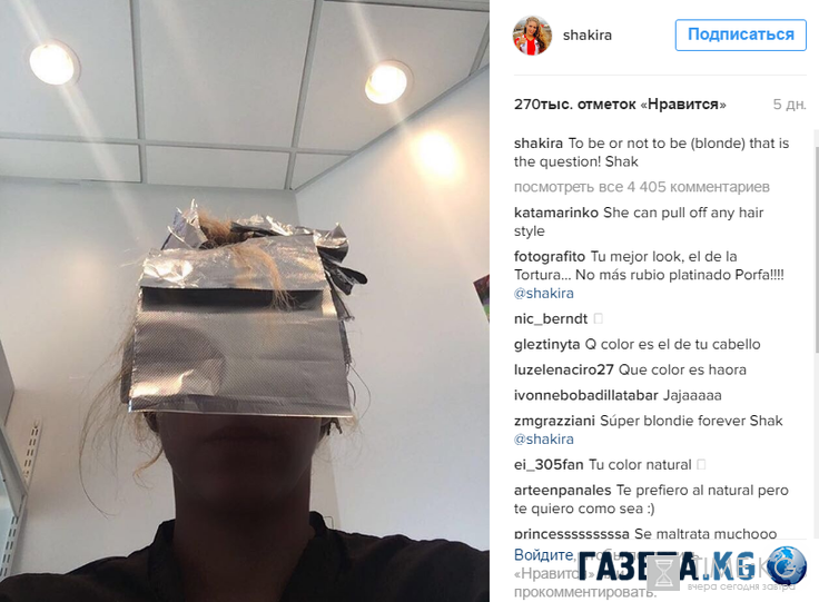 Необычное фото, которое опубликовала певица в своем микроблоге, заинтересовала и одновременно заинтриговала поклонников звезды: Шакира сделала селфи в салоне красоты, показав себя зрителям в довольно интимном виде. Она сфотографировалась, расположившись в кресле салона и скрыв лицо за фольгой. «Быть или не быть», снабдила певица фото загадочной надписью.