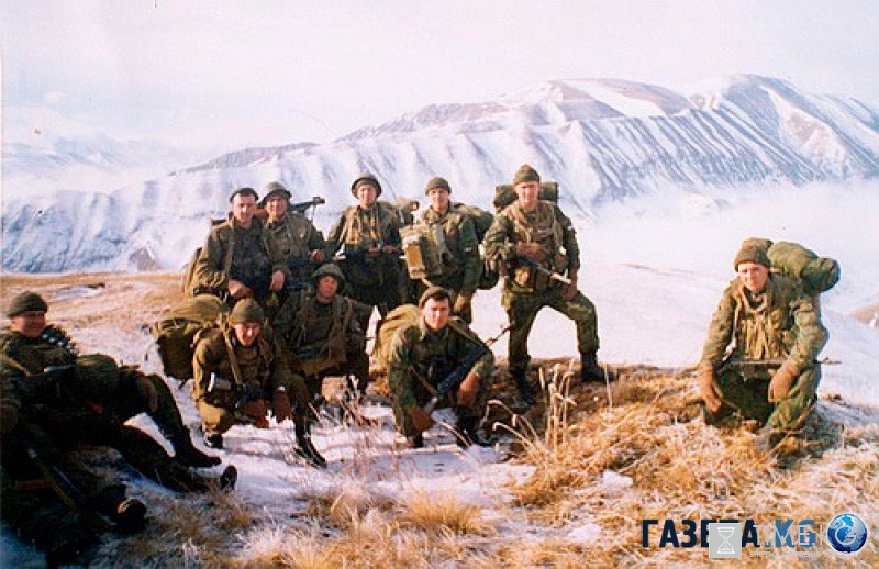 После боя за высоту 3234 — Игорь Печерских и Сергей Рожков (командир взвода 9 роты)с солдатами и сержантами 9 роты:справа — гв.сержант Веригин Владимир (Боксер — с ударением на «о»), гв.сержант Борисов