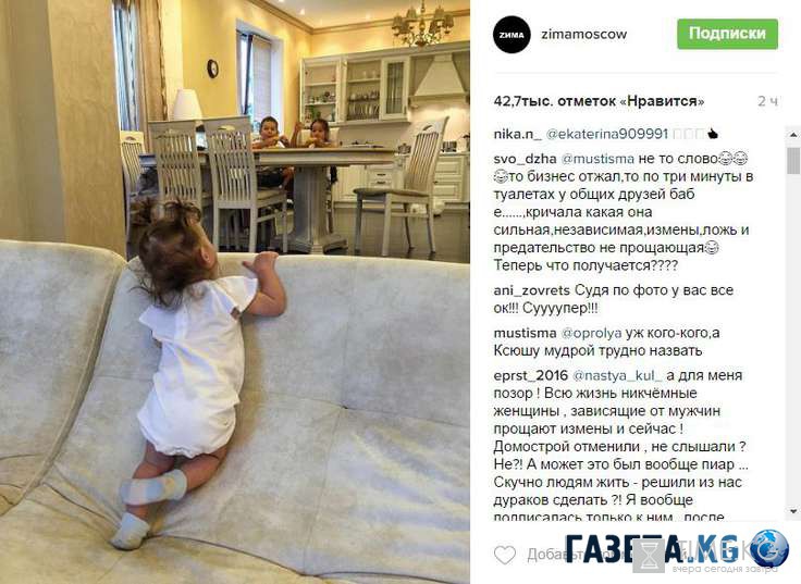 Поклонники пары в недоумении – Курбан Омаров опубликовал снимок, на котором запечатлены трое детей – старший Омар от первого брака Курбана, дочь Бородиной Маруся и их совместная дочка Теона. Пока Ксюша на работе, с детьми сидит папа, и, по всей видимости, в их новом доме. Однако поклонники еще не забыли, как несколько недель назад Ксения опозорила мужа на весь Рунет, рассказав о том, что он изменил ей у друга в туалете за три минуты.