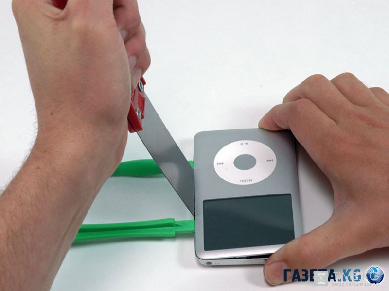 Чтобы снять крышку iPod Classic, ремонтнику нужно поддеть её при помощи сразу нескольких инструментов. Фото iFixit