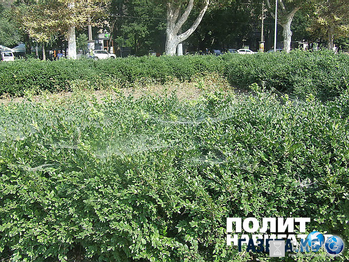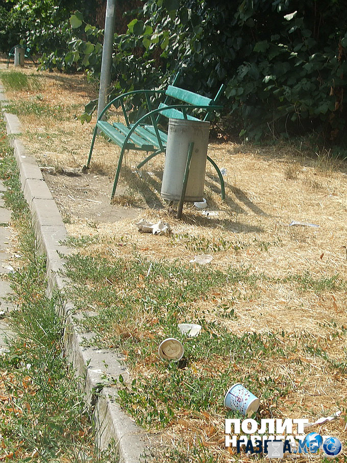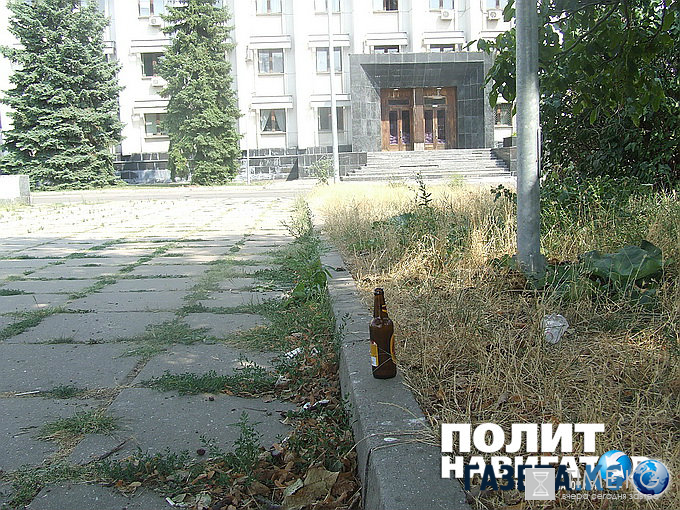 Сорняки никто не пропалывает. Даже в щелях между плиткой. Система автополива уничтожена. И не дай вам Бог свернуть с тротуара на тропинку, ибо вступите вы отнюдь не в Европу. А помимо этого будете идти по настилу из выжженной соломы, окурков, нацепляете на себя репейников и подумаете: «Только бы никого не встретить — с такими-то ногами, грязными до колен!». И все это на фоне автопарка трудящихся ОГА…