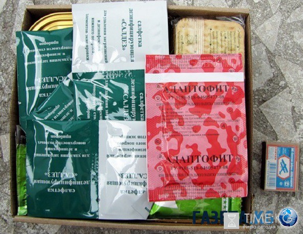Каждый комплект содержит шесть таблеток сухого горючего, спички и подставку для разогрева пищи. В российский сухпаёк входят три таблетки.