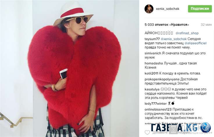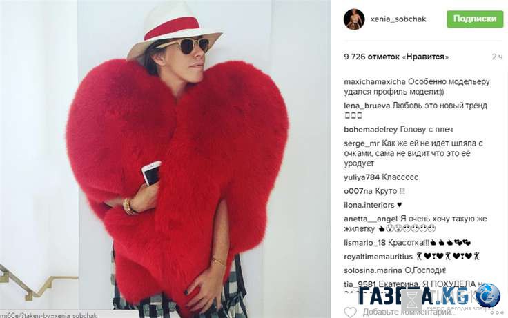 Ксения Собчак, видимо, уже не знает, как скрывать свой округлившийся животик и ее наряды постепенно становятся все свободнее. Собчак выложила снимок, на котором она одета в огромную сердцеобразную шубу, ярко-красного цвета. На голове Ксении красуется шляпа, а на лице очки. Новый образ звезды, сразил поклонников наповал и некоторые даже не узнали Ксюшу, перепутав ее с мужчиной. Под снимком телеведущая оставила комментарий, написав, что собирается на кастинг фильма «Алиса в Зазеркалье» и желает сыграть роль Королевы Сердец.
