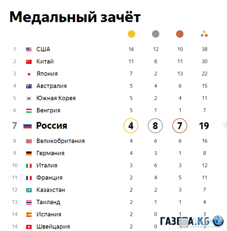 Также копилку сборной России могут пополнить фехтовальщики и стрелки. Кроме того, особое внимание будет приковано к Яне Павловой, которая попробует сразиться за медаль в прыжках на батуте. На данный момент Россия находится на 7 месте с 19 наградами. В копилке российской сборной уже 4 золота, 8 серебряных медалей и 7 бронзовых.