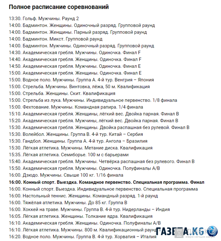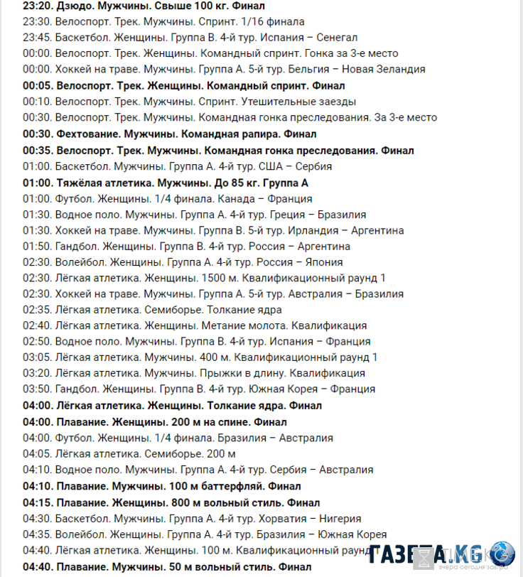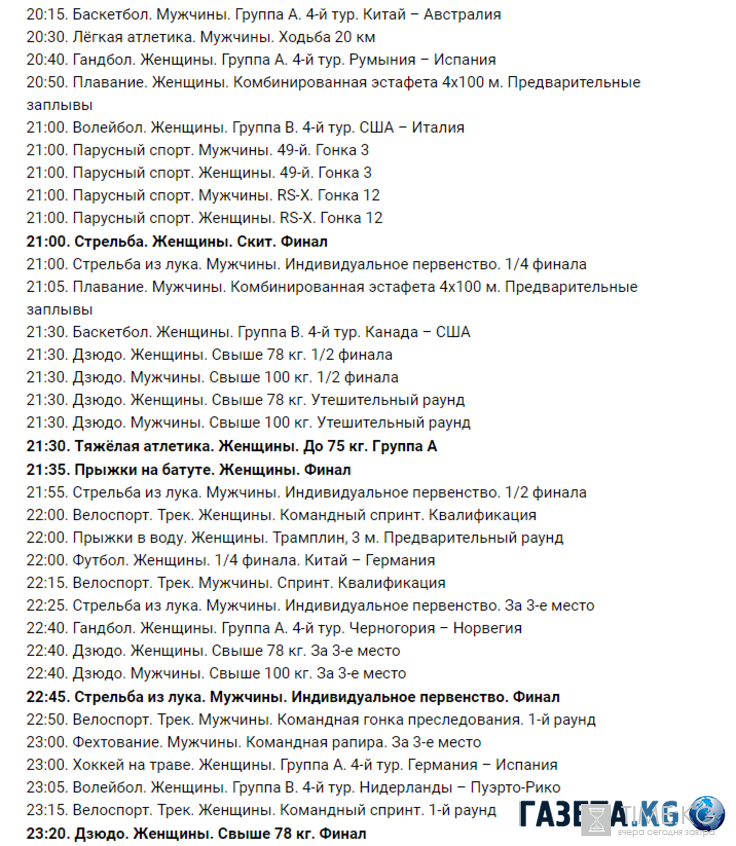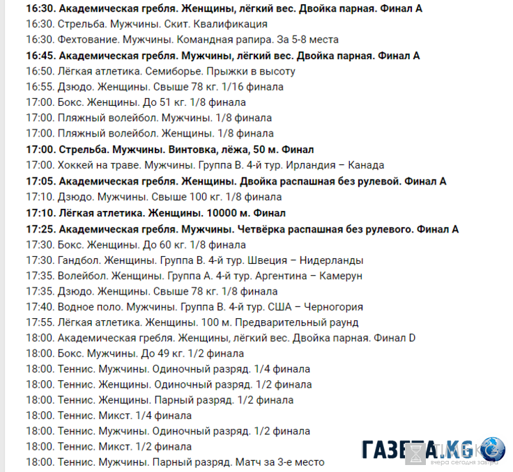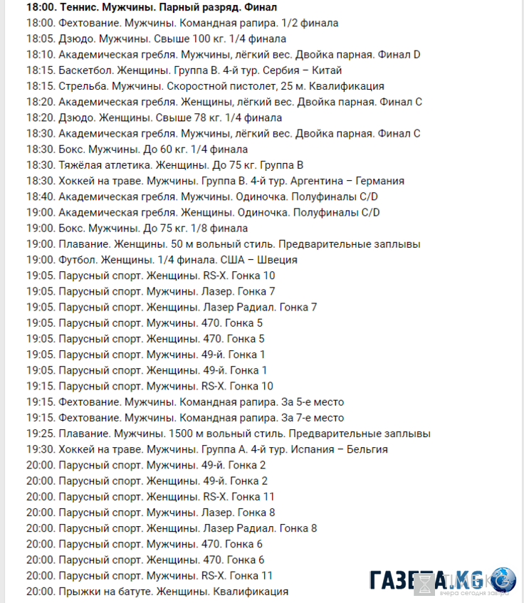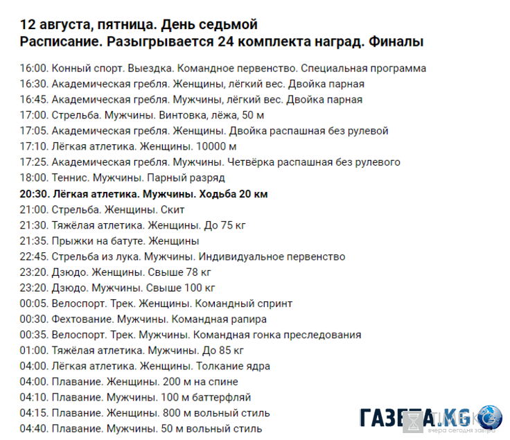 Сегодня 12 августа зрители могут посмотреть следующие финалы: