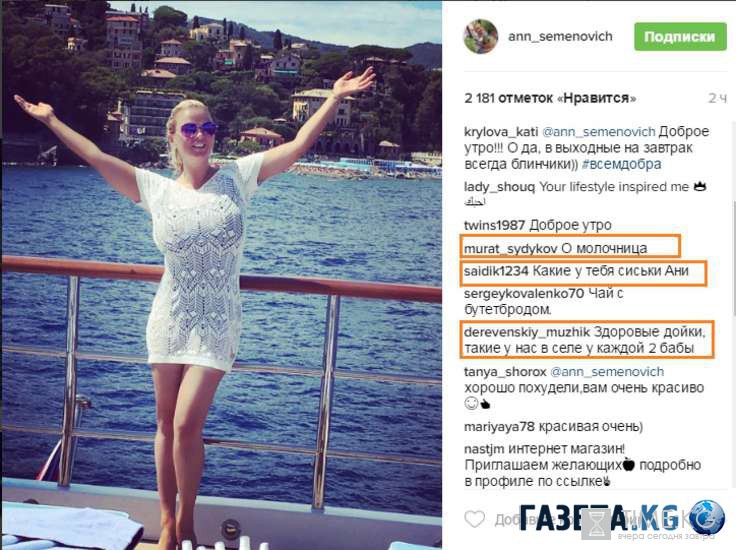 «Хорошо похудели, Вам очень красиво!», «Красивая очень», «Солнышко!» - поклонники завали Анну Семенович хвалебными эпитетами. Стоит отметить, что в последнее время певица действительно очень постройнела. Но ряд злопыхателей связывает это факт с мастерством фотошопа.