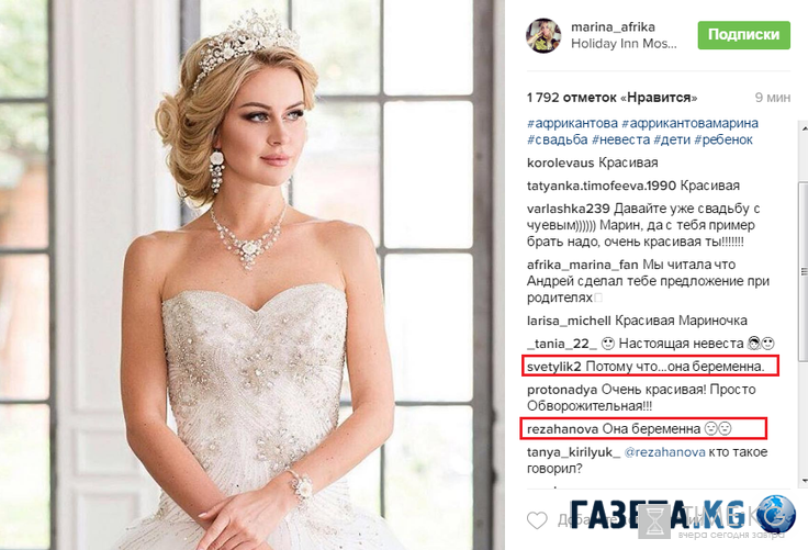 Скоро замуж и рожать: Марина Африкантова в свадебном платье намекнула на свою беременность