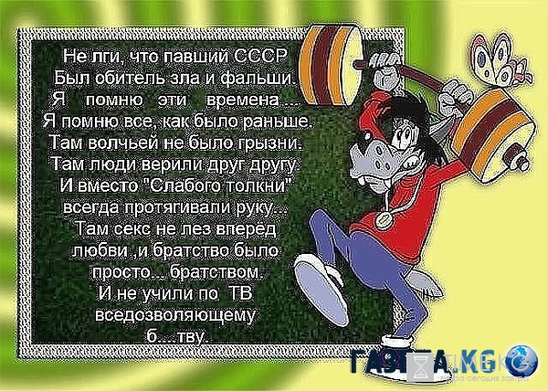 А вообще, СССР напоминал большой детский сад, где нам, несмышленым, говорили, когда есть , когда спать, следили, чтоб мы не бегали без тапочек, прививали и кварцевали, учили веселым песням и умным сказкам, направляли нашу энергию в правильное русло, давали возможность реализовать себя кому Зайчиком, кому Снежинкой, кому Лисичкой, прятали острые предметы, наказывали за плохие поступки, хвалили и поощряли за хорошие, формировали четкое понимание Добра и Зла, без полутонов, без разночтений, без открытых финалов.