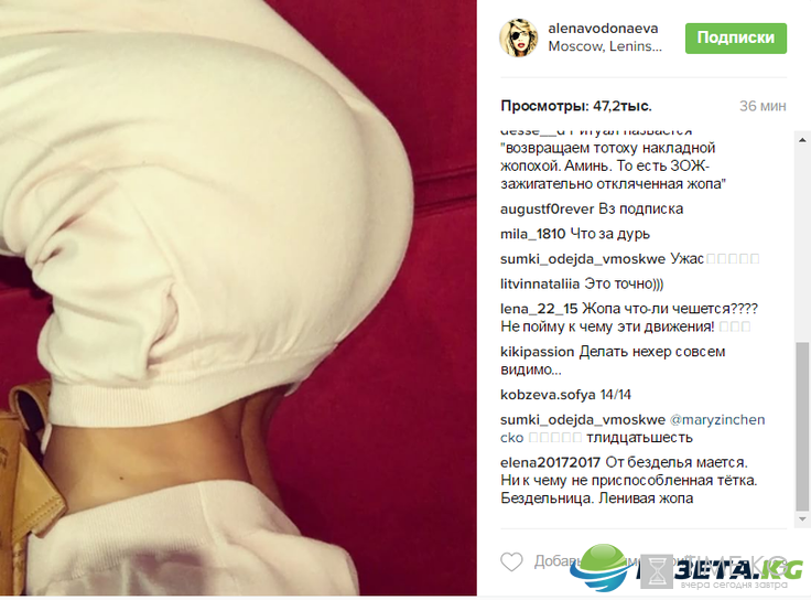 «Алена, к чему ты жопердоль свою выставила? Вроде уже не шестнадцать», «Это ж надо так умудриться», «Это кошмар, товарищи», «Противно», «Перебор», «Это кошмар» , - написали поклонники. Впрочем, некоторые отметили, что Водонаева, несмотря на года, находится в хорошей форме.