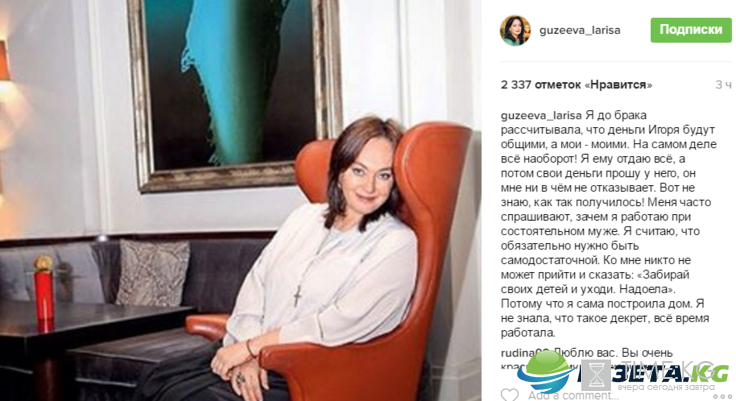 Впрочем, и мнение Ларисы, и мнение ее подписчиц, достойны уважения, ведь ситуация в каждой семье индивидуальная. А следовать-ли примеру Гузеевой, каждый решает сам.