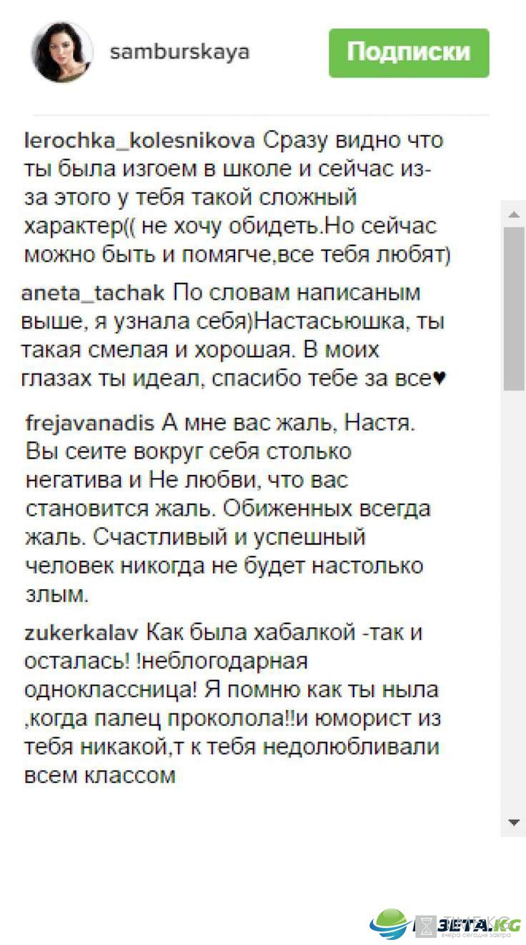 Поклонники Настасьи в большинстве согласились с ней, написав, что тоже терпеть не могли школу, однако прозвучало мнение, что Самбурская была изгоем в школе, от того у нее такой сложный и тяжелый характер.