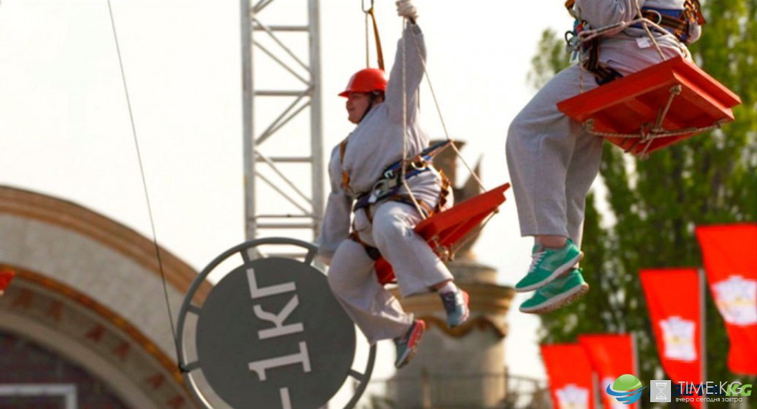 Во втором испытании пары соперников – мужчина против женщины – поднялись на высоту 8 метров и удерживали на вытянутых руках огромный диск, который символизировал -1кг на взвешивании. Участник, которому удалось удержать его в своих руках, получил бонус, а проигравший остался ни с чем.