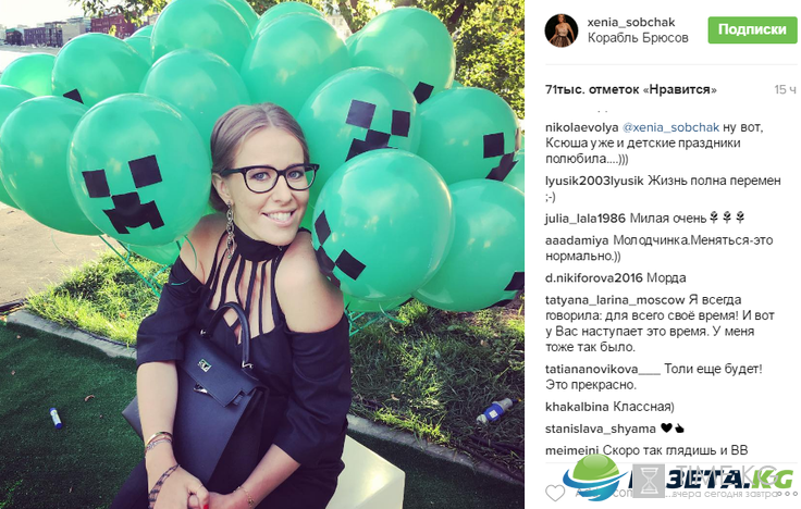 Несмотря на то, что Ксения смягчила свою позицию по отношению к детям, она удивляясь самой себе, подписала фото с шариками с детского праздника необычными тегами: «#докатились», «#жизньполнаудивительныхперемен», намекая на изменение собственного мировоззрения. Поклонники похвалили такую перемену и поддержали ее в этом отношении.