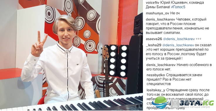 Этим участником пользователи Сети назвали 19-летнего Юрия Юшкевича из Санкт-Петербурга. Причину своего отторжения от юного исполнителя зрители объяснили не его выступлением, а его фразами, сказанными в беседе с Дмитрием Нагиевым непосредственно перед выходом на сцену. Юрий заявил: «У нас в России педагогов нет, чтобы правильно поставить голос» (имелось в виду голос его тональности – прим. ред.). Видео интервью с этим заявлением: