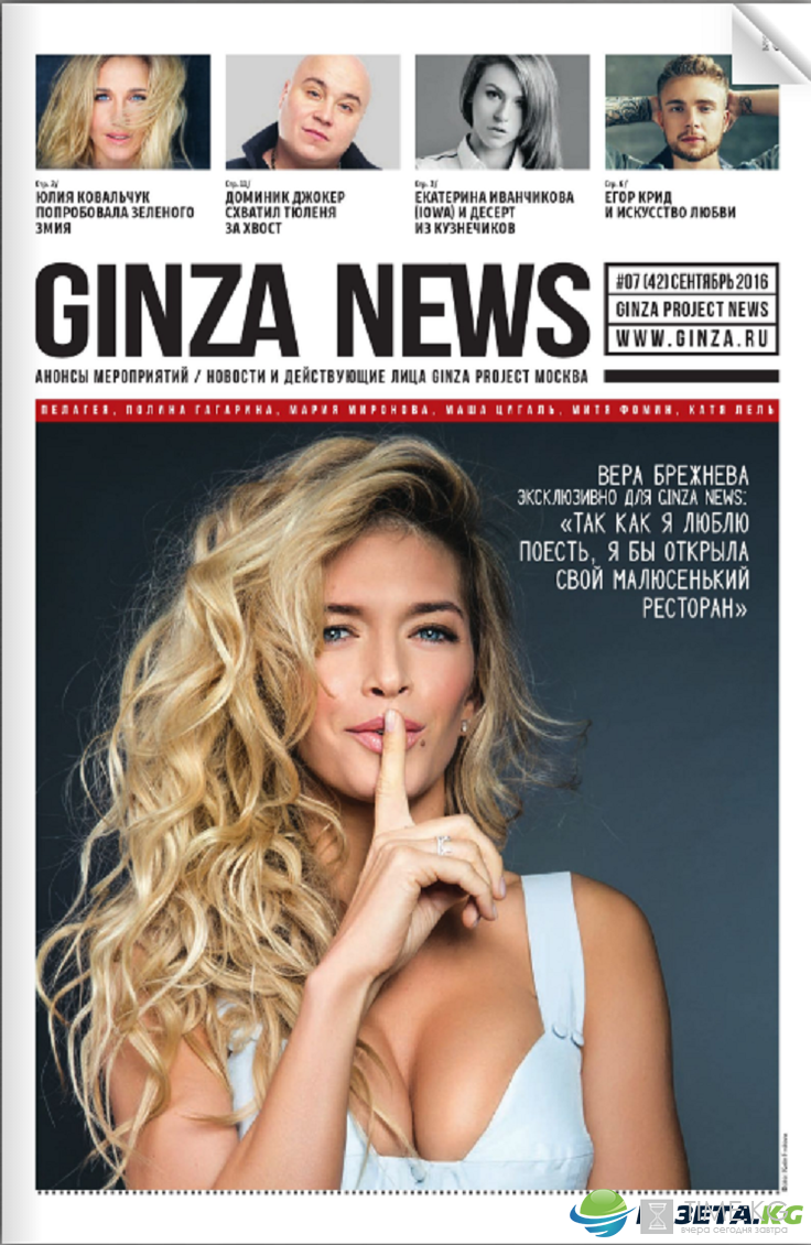 Издание Ginza News практикуется на материалах для ресторанного бизнеса. Героем издания первого месяца осени стала Вера Брежнева. Звезда призналась, что любит вкусно поесть и была бы совсем не против открыть маленький ресторанчик с домашней кухней, причем суть такого бизнеса не в прибыли, а в удовольствии.