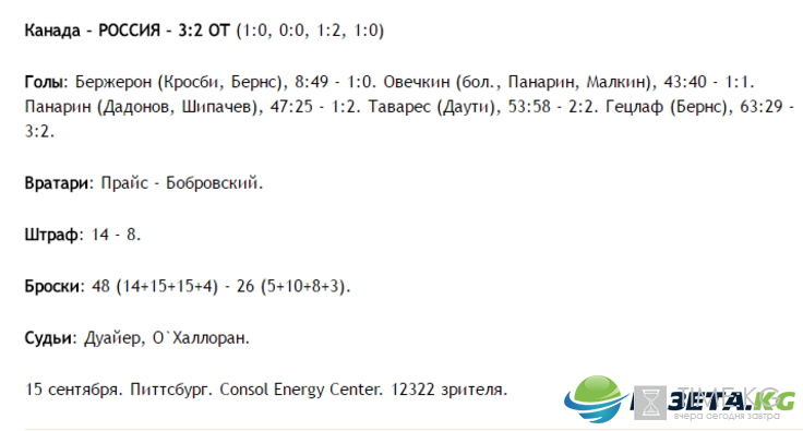 Канада - Россия выставочный матч 2016 счет, смотреть онлайн: в выставочном матче российская сборная проиграла Канаде – счет составил 2:3 ОТ. Среди россиян в основное время отличились спортсмены Александр Овечкин и Артемий Панарин. А вот решающий бросок принадлежит Райану Гецлафу. Следует отметить, что овертайм состоялся в формате «три на три».