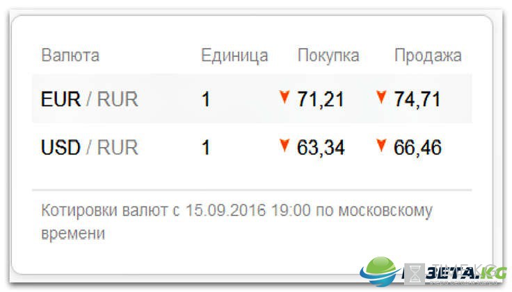 Сбербанк, курс валют на сегодня 16 09 2016 следующий: доллар — 63,34 (покупка), 66,46 руб. (продажа), евро — 71,21 руб. (покупка), 74,71 руб. (продажа).
