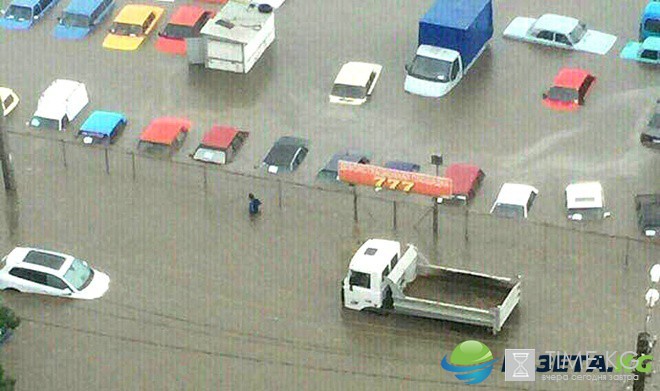 Из-за дождя на многих дорогах города стоит вода, в некоторых местах ее уровень достигает 0,5 м и выше, что затрудняет движение транспорта.