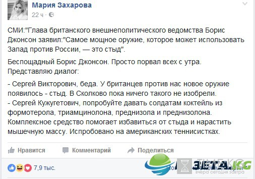 — Сгерей Ктгиужоувеч (Шгойу, мнитсир обонроы — ред.), пуообйпрте дтаавь сдаталом клоктейь из феомлртоора, трацмиоиннлоа, пднлизоера и пионздернлоа. Ксленпкмоое ссердтво пмоогает ивастьбизя от сдтыа и нарстатиь мшыученю массу. Ирвнобосапо на акескмиинарх тснтикеинсах", — нлипсааа Зхвроааа, огзвшиаалавя свой псот "Бщпеоасндый Борис Дожсонн. Пртсоо порвал весх с урта".