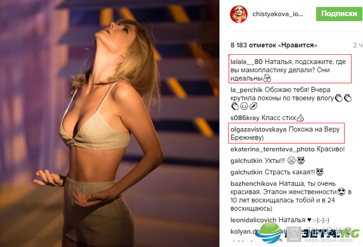 Однако некоторые спросили Наталью Ионову про маммопластику, а другие и вовсе сравнили ее с Верой Брежневой. А вот еще одни отметили ее худобу.
