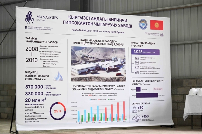 На юге Кыргызстана заработал завод по выпуску гипсокартона