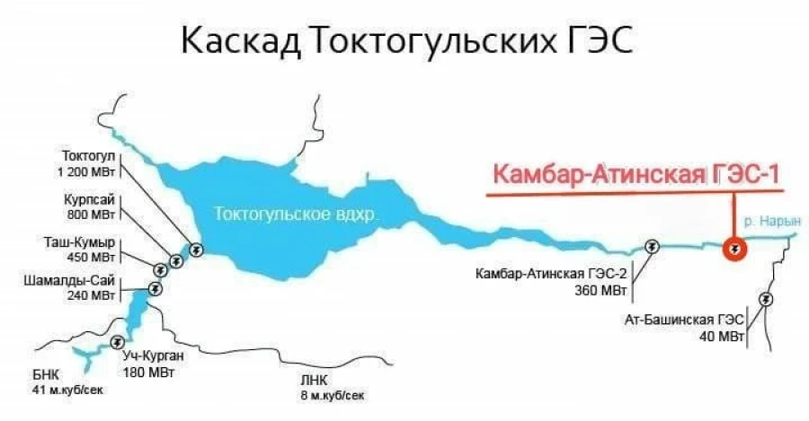 В начале текущего года Кыргызстан, Узбекистан и Казахстан пришли к соглашению о совместном строительстве ГЭС «Камбар-Ата – 1» с мощностью 1,86 гигаватта на реке Нарын.
