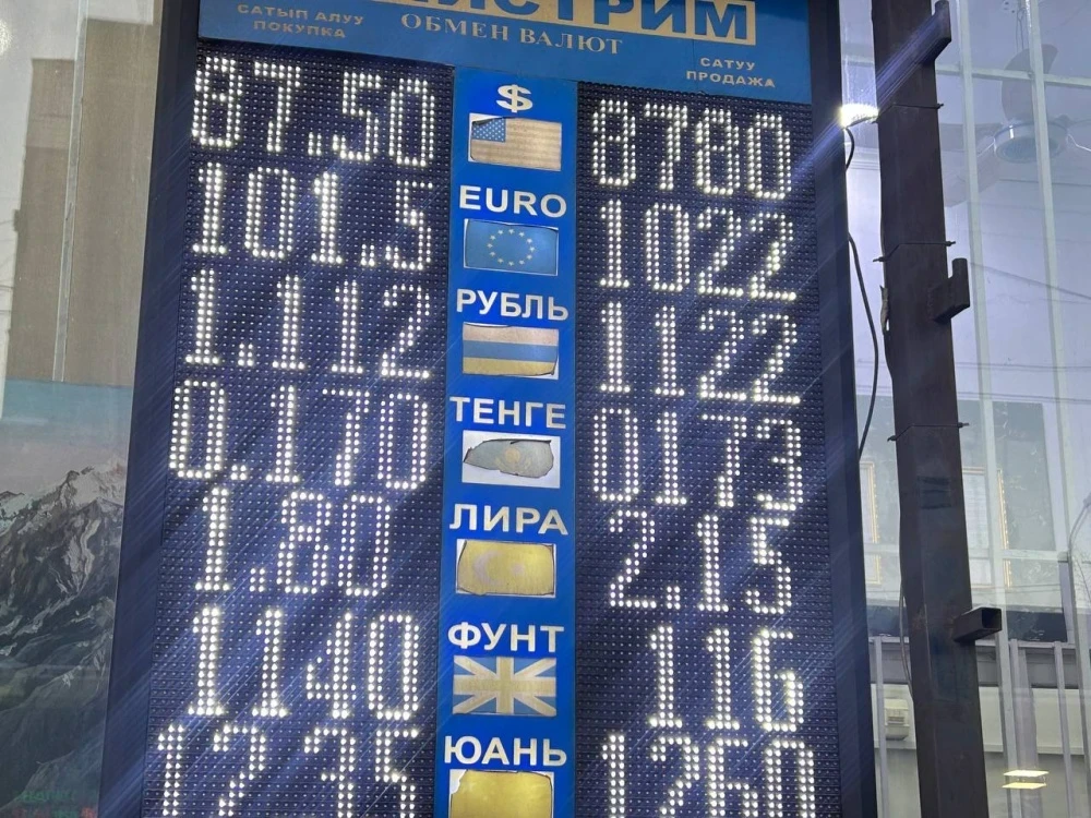 Что касается рубля, то его стоимость снизилась: цена покупки составляет 1,10-1,12 сома, а продажи - 1,12-1,13.