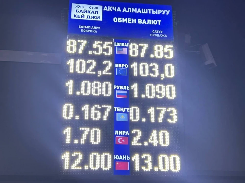Что касается рубля, то его курс также изменился незначительно. При покупке он стоит 1,08-1,09 сома, а при продаже - 1,09-1,1 сома.