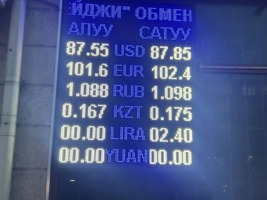 Курс доллара остался неизменным: 87,55 сома при покупке и 87,85 - при продаже.