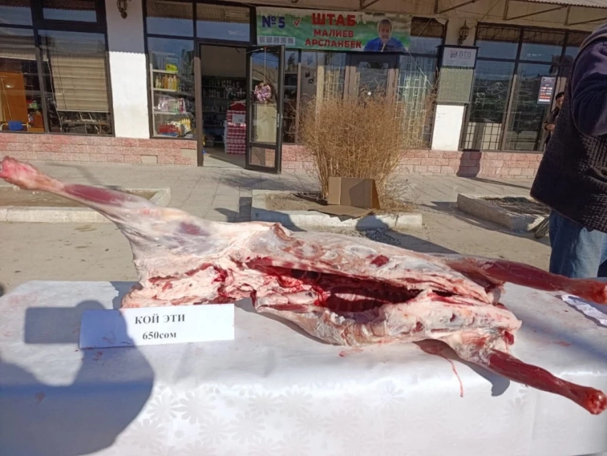 В частности, цена на мясо яка составила 600 сомов за килограмм, в то время как баранина продавалась по 650 сомов. Также сообщается, что мясо индейки имело более низкую цену по сравнению с рыночной.