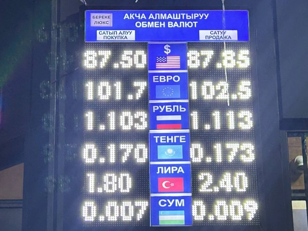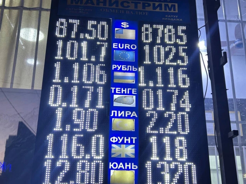 Курс доллара изменился: его покупка составляет 87,5 сома, а продажа — 87,85 сома.