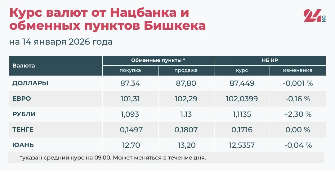 - Официальный курс от НБ КР: 87,449 сома (уменьшение на 0,001 процента).