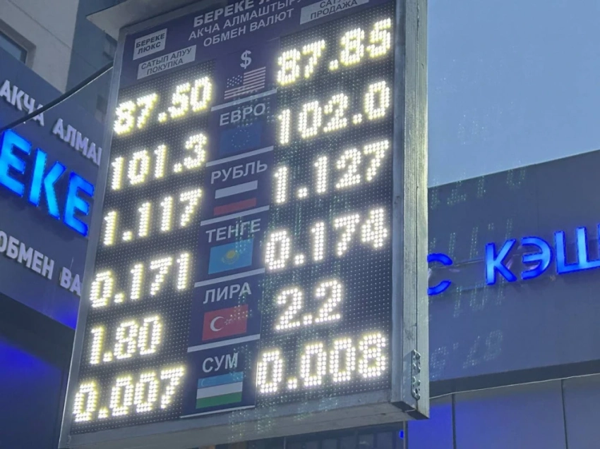 Курс доллара остается неизменным: покупка составляет 87,5 сома, а продажа — 87,85 сома.