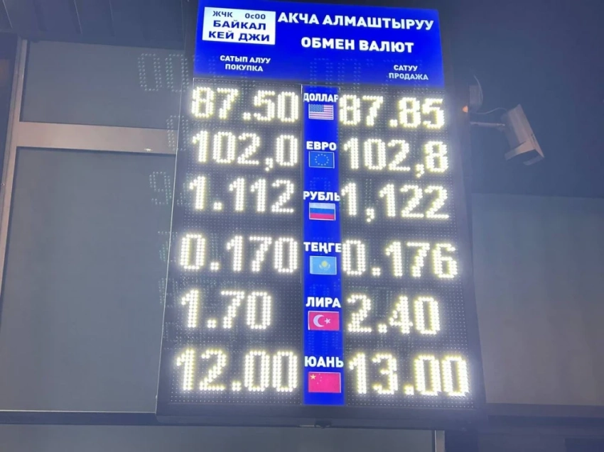 Рубль подорожал. Его цена на момент покупки составляет 1,11-1,12 сома, а на продажу — 1,12-1,13 сома.