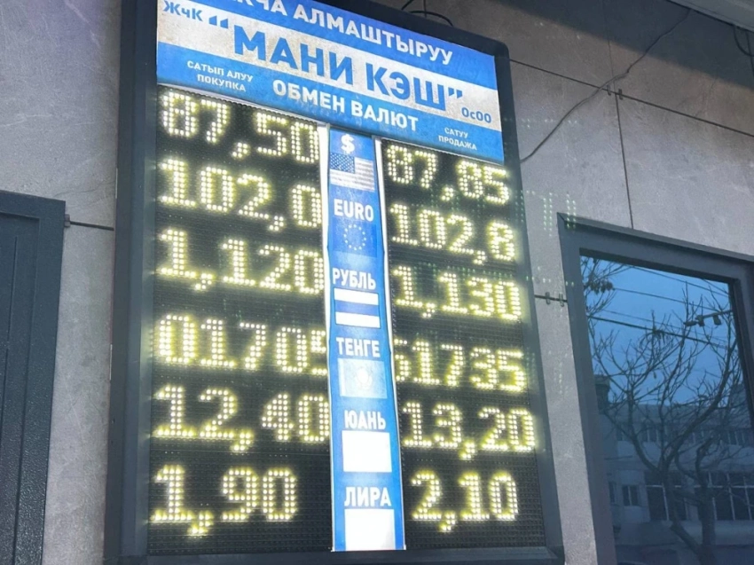Что касается евро, его стоимость варьируется: покупка — 101,3-102,1 сома, а продажа — 102,0-102,9 сома.