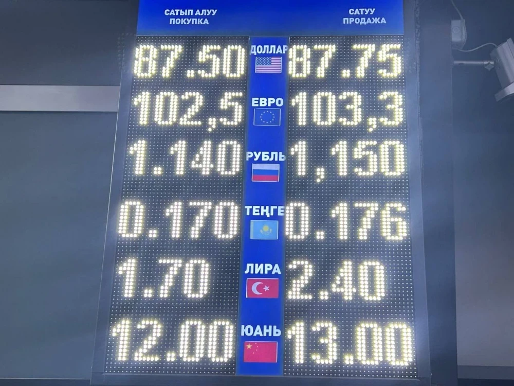 Доллар подорожал: его цена при покупке составляет 87,5 сома, а при продаже — 87,75 сома.